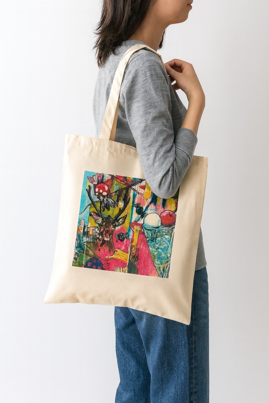 このトートバッグにプリントされたアート作品は、